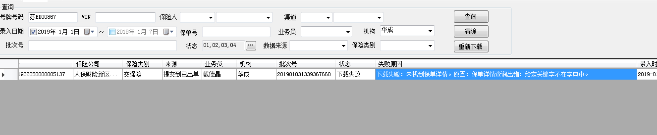 【华成】人保下载保单提示:下载失败:未找到保单详情。原因:保单详情查询出错:给定关键字不在字典中。
