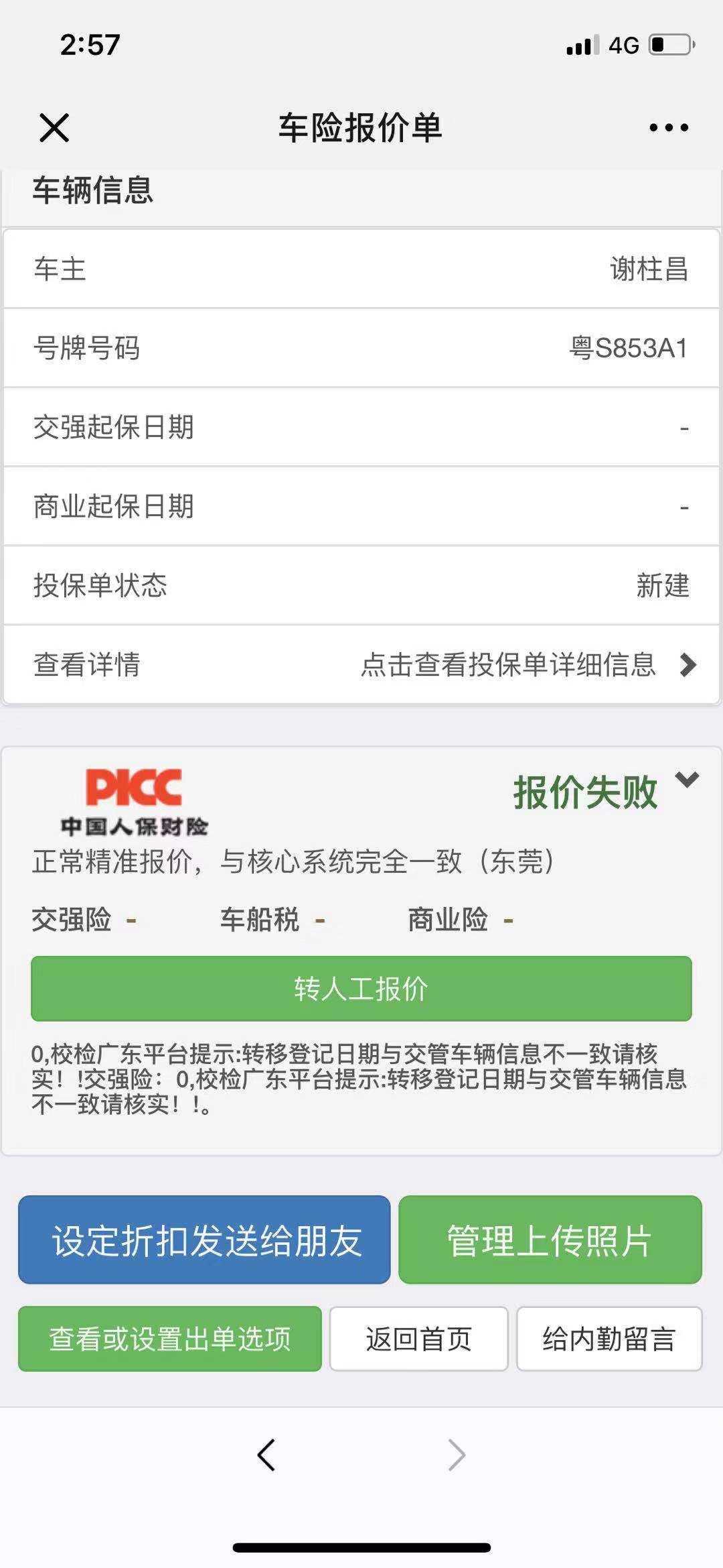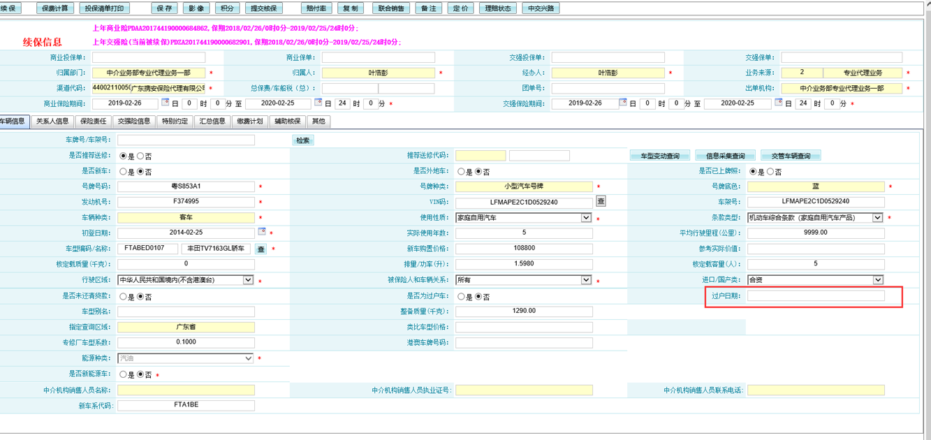 问题的两辆车提示"转移登记日期与交管车辆信息不一致",因为车过过户,而人保,太保系统从"续保查询"和"交管验证"也查不到过户日期,所以报价失败.