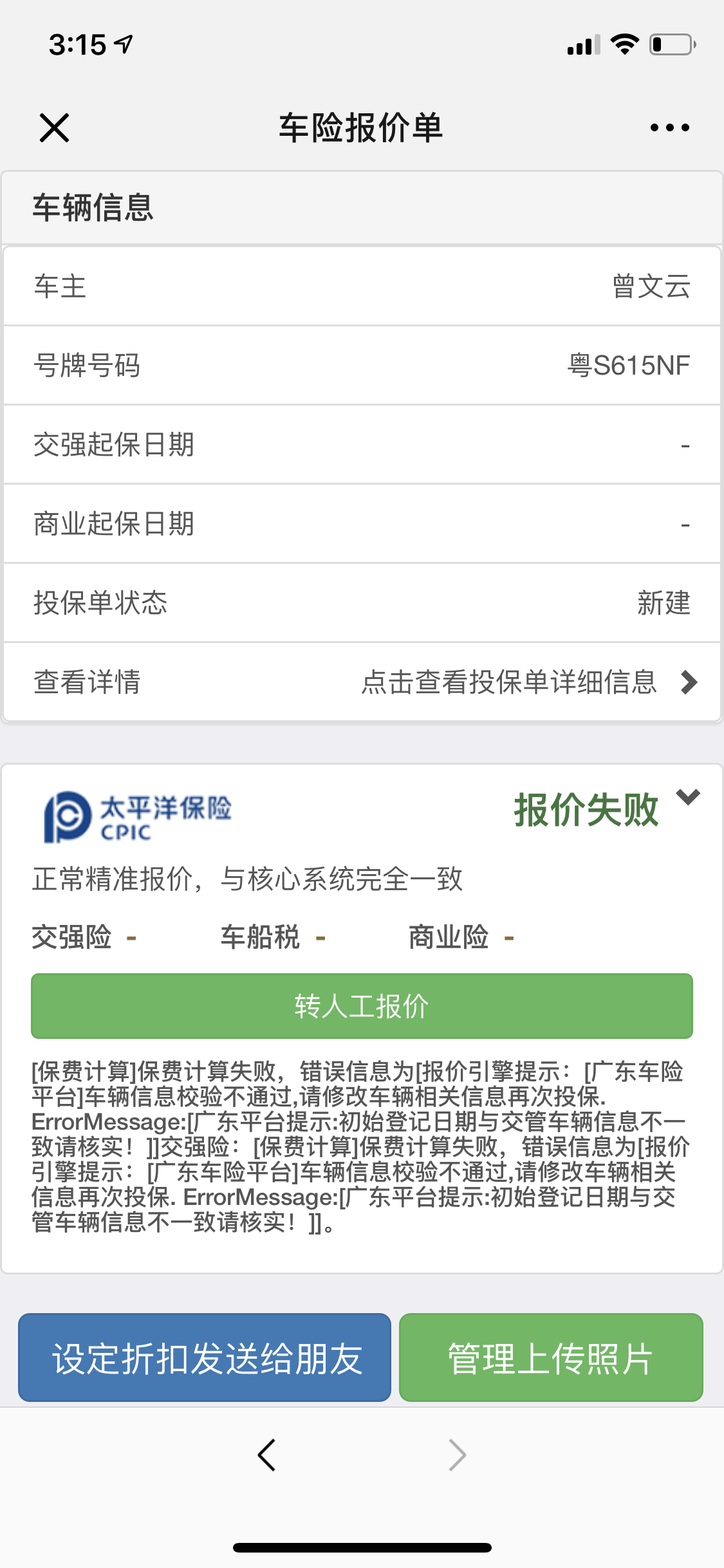 内容:太保的也增加了交管信息验证,同样报价提示交管信息验证不一致。
