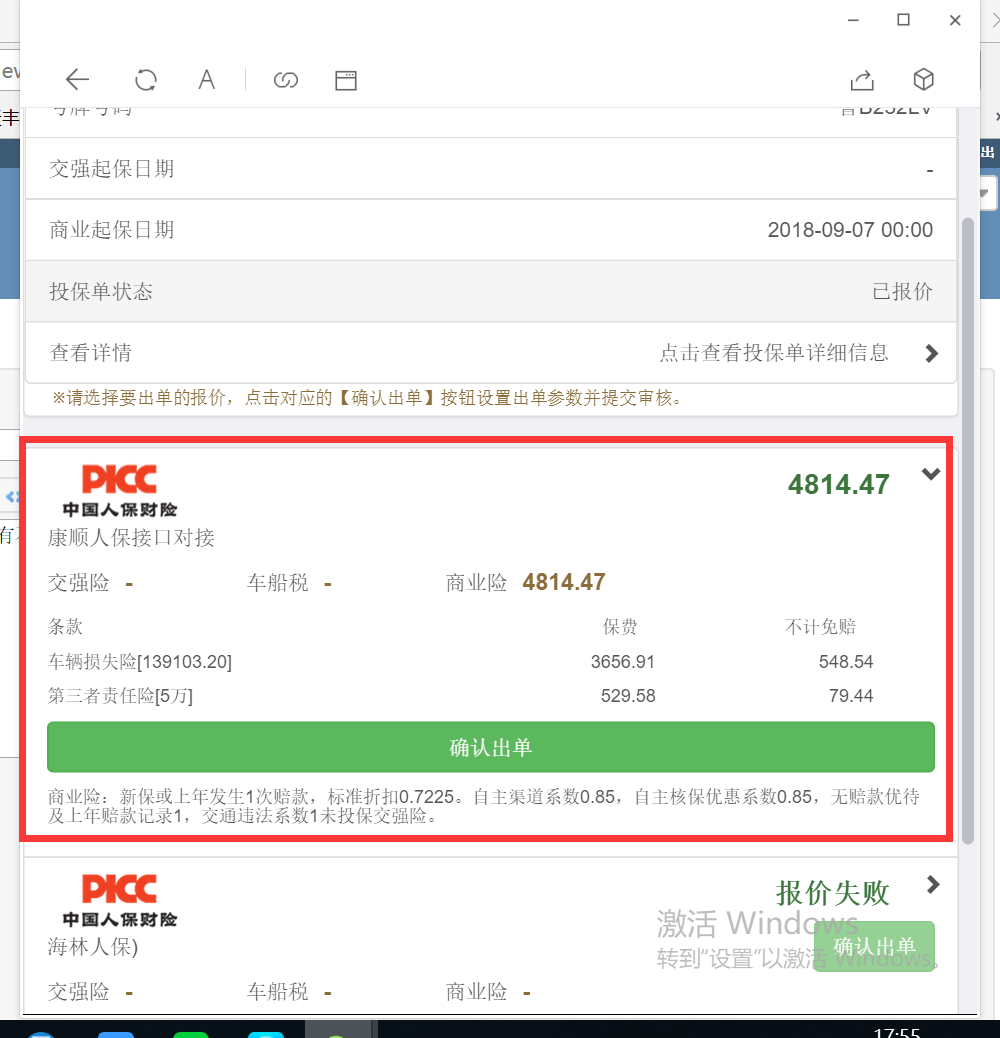 见附图,同一辆车相同条款、相同保险公司的报价结果