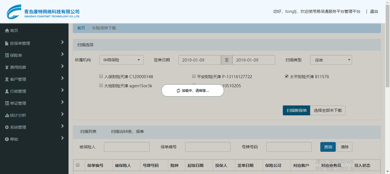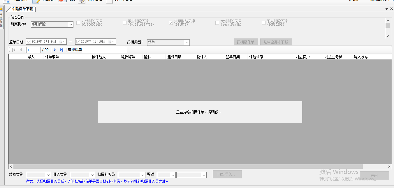 内容:易保通cs/bs版,扫描不出保单,选择日期点击扫描保单后停留在查找状态。