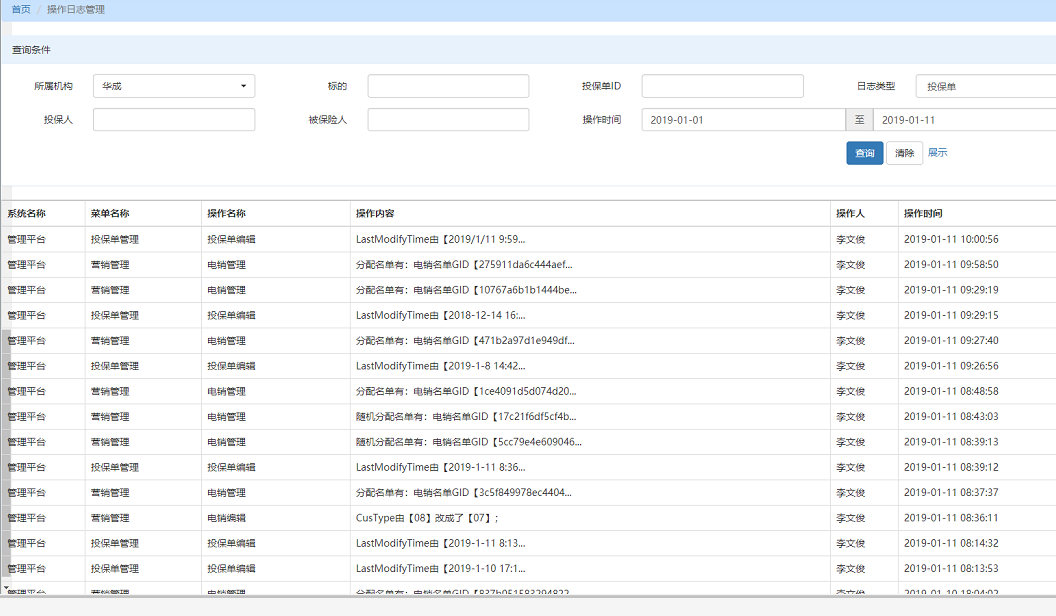 【苏州华成】日志管理中每个小模块中的内容都未将显示列全面展示