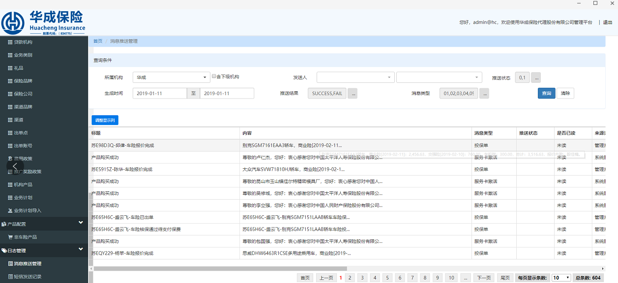 点击查询后获取到的消息列表中,“内容”一列都未显示全面,导致整个页面不美观。