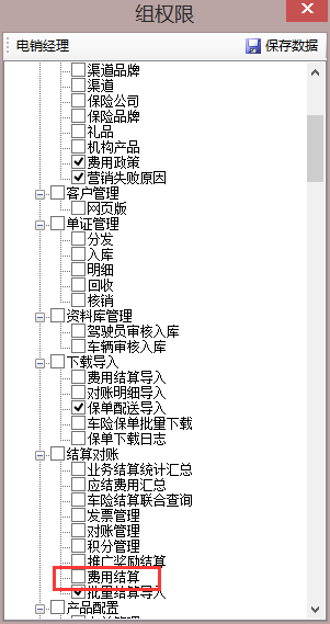 在用户组管理中,电销经理勾选“费用结算”“操作日志”,使用只有电销经理权限的用户登录后点击业务费用结算,系统提示“')'附近有语法错误。。”导致客户无法使用业务费用结算功能。