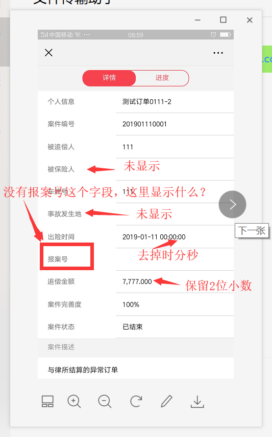 4. “出险时间”改为“赔付”时间,去掉时分秒