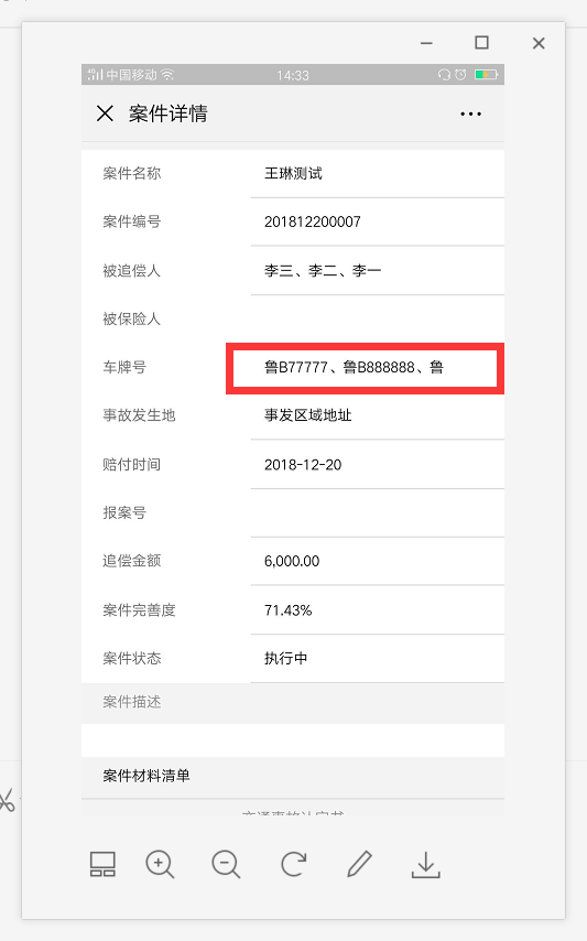 测试环境验证通过。已修改为滑动查看,当被追偿人和车牌号过多时,可向右滑动查看