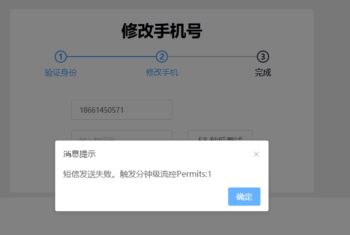 如果要修改的手机号和原手机号相同,那么会出现如图所示错误