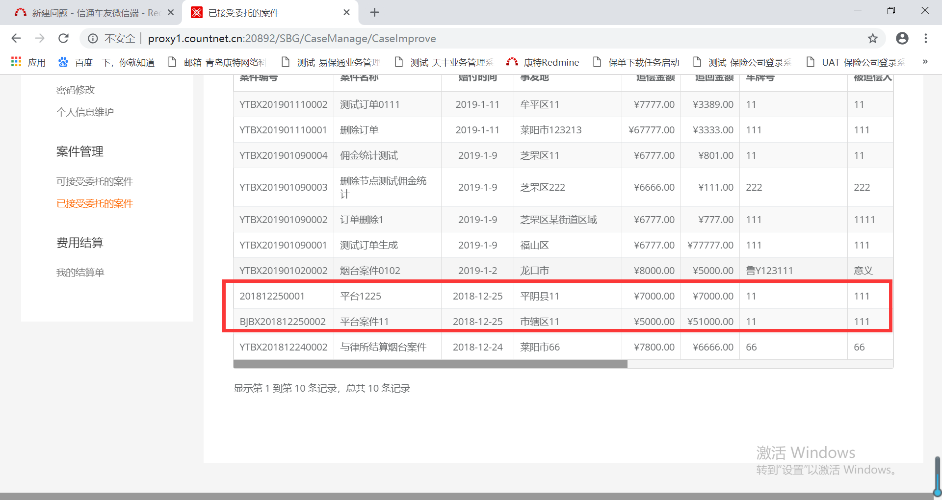 使用此账号测试,该问题仍然存在。有两个案件不显示,请查明原因