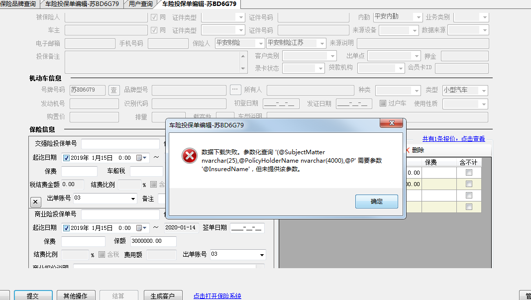 【万舜】平安投保单提交到已报价时提示下载失败。