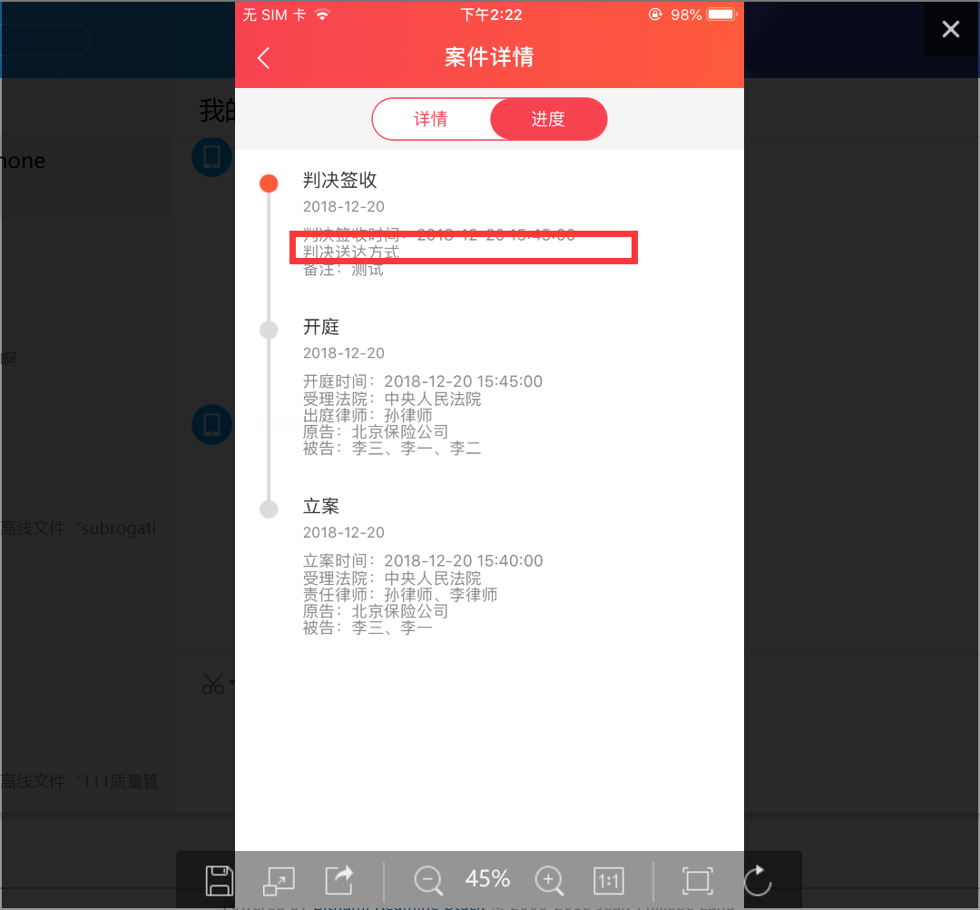 【代位追偿】进度中,判决送达方式不显示