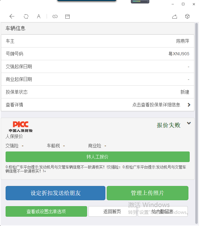【李小保】微信报价失败,提示“请先进行交管验证”