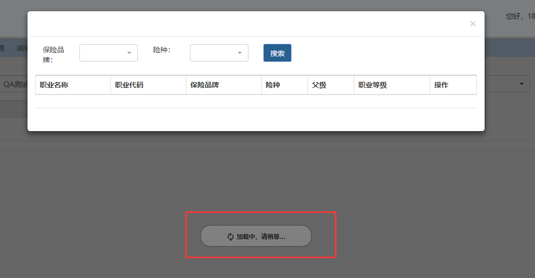如图所示,在弹窗点击搜索,加载情况不要显示在遮罩层后