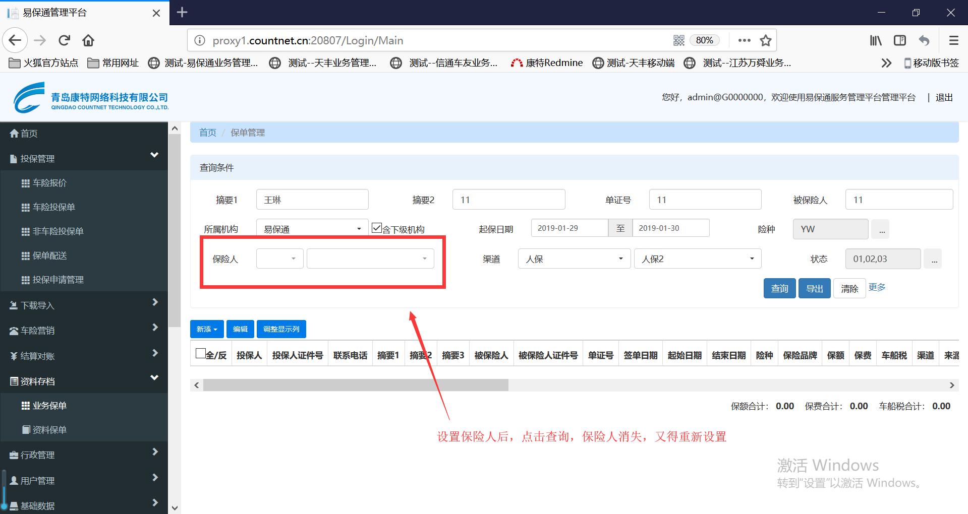 【速成高级版】业务保单,查询页面设置保险人后,点查询,保险人消失