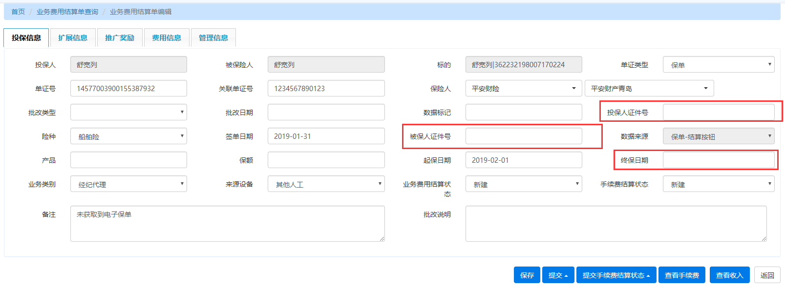 投保信息模块,投保人和被保人证件号,终保日期没有传值为空