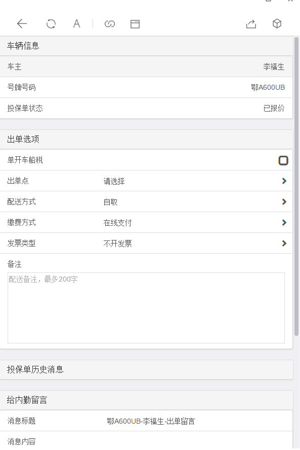 太保API接口报价完成后,缴费方式选择为“在线支付”,发票“不开发票”点击提交核保,最后系统却提示“请确认荷包信息后再提核或转人工处理。保险公司返回:第三方非网销核保提交”必需勾选电子保单、电子保单短信通知必录。导致提核失败,请开发排查是接口不支持还是操作有误导致。
