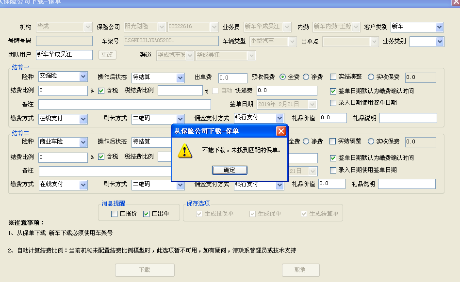 【华成】阳光财险下载保单时出现查找不到保单的情况,但是重新保持登录时并未提示掉线。