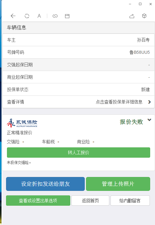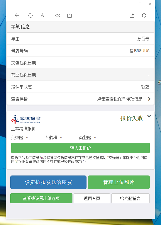 内容:微信报价结果提示“投保查询校验信息不存在或已经校验成功”,保险公司内可以正常报价