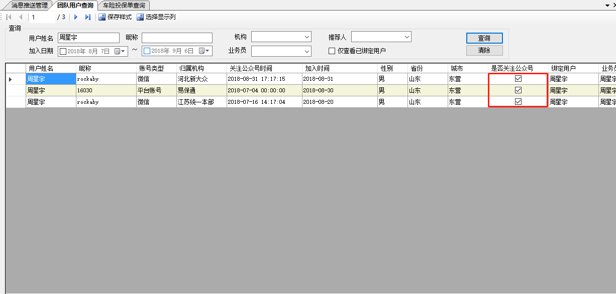 【通用】易保通团队用户查询页面,当用户取消关注之后,再次查询,显示的还是之前的状态(还是关注状态)