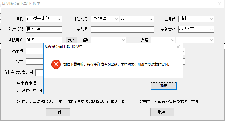 【江苏统一】投保单无法下载,提示未将对象引用设置到对象的实例。