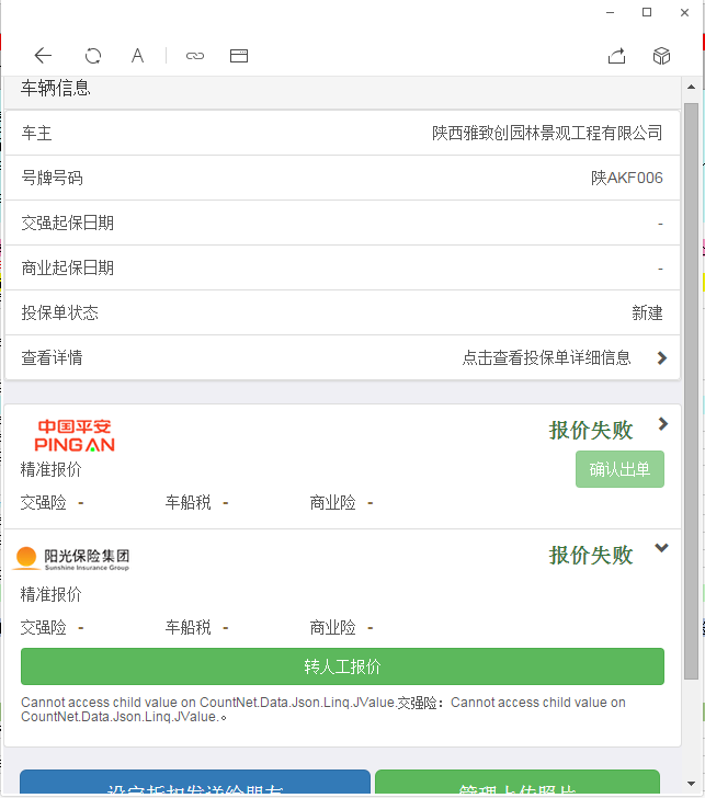 内容:平安和阳光报价都失败,已检查过配置参数,可能是特殊地区需要特殊进行处理,请开发查明原因,平安账号为保险经纪账号,配置参数与专业代理不同,请注意。