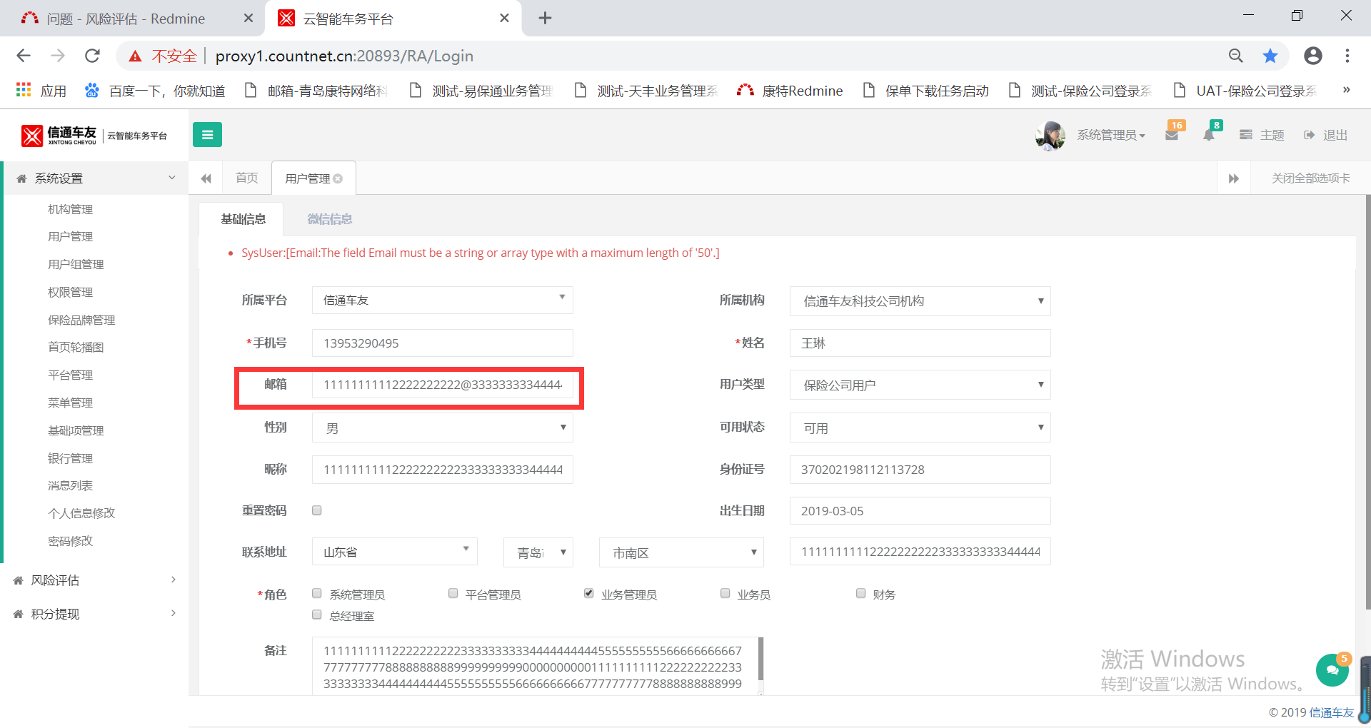 【用户管理】邮箱超长时保存报错