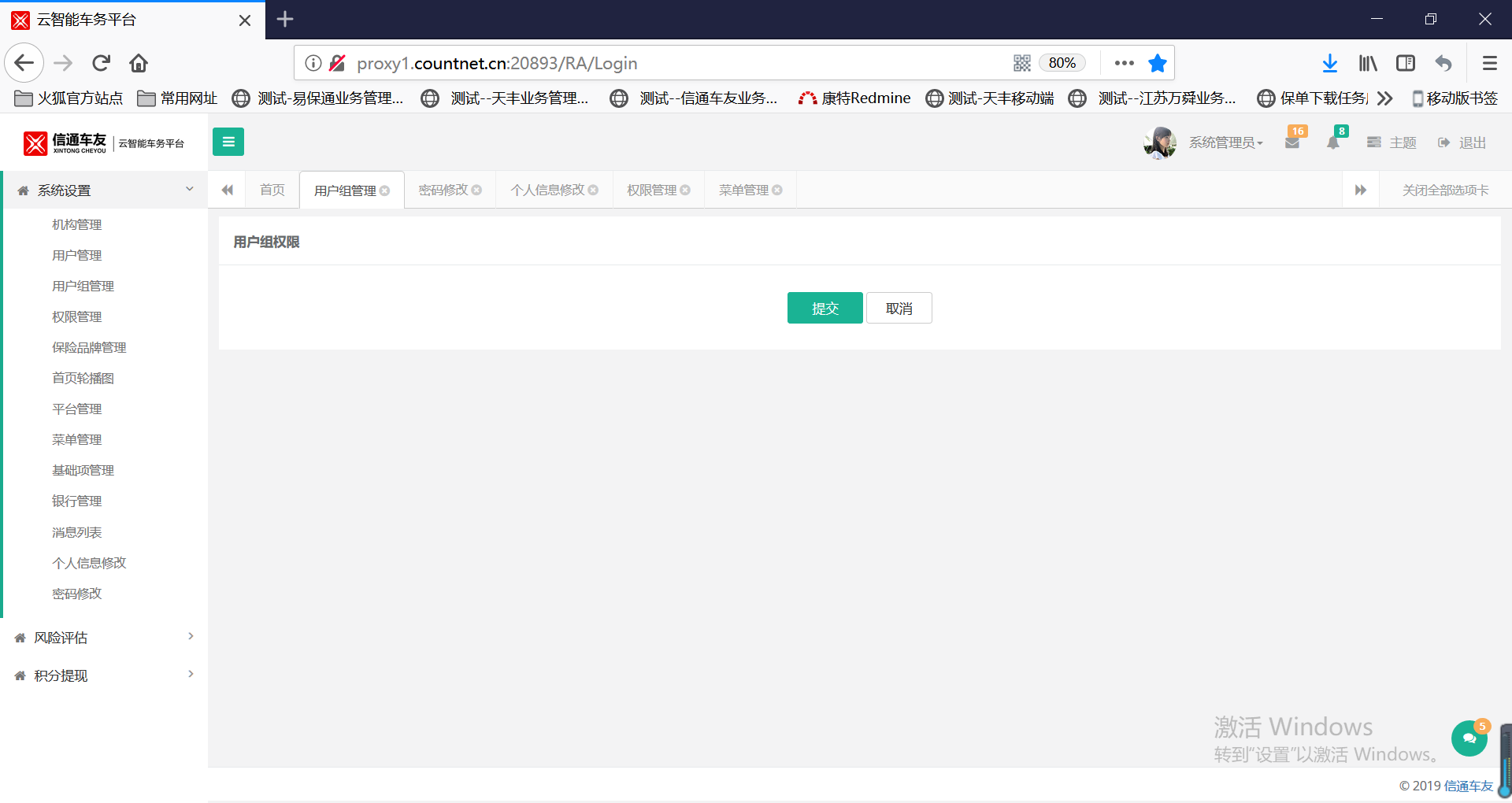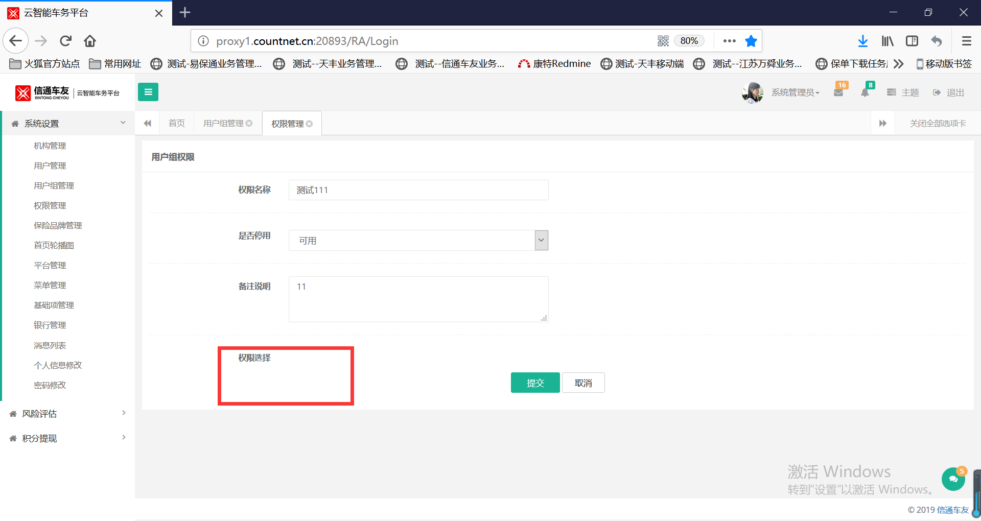 编辑用户组权限,显示为空,影响用户权限测试。权限管理中也为空。见附图