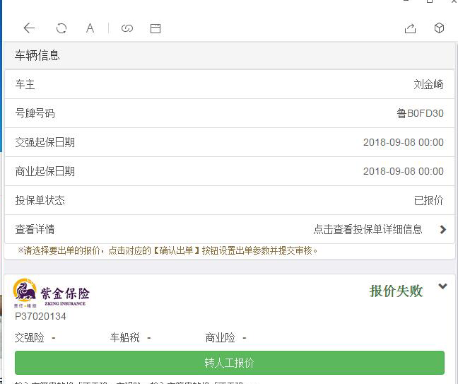 虽然可以报出价格,但是无法再保险公司系统内生成暂存单,还需要进行修改。