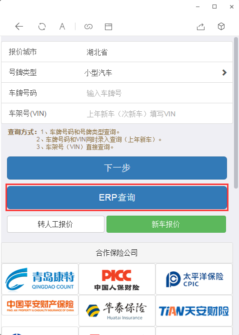 在测试环境下更该机构为康顺测试。点击报价中的从ERP查询。