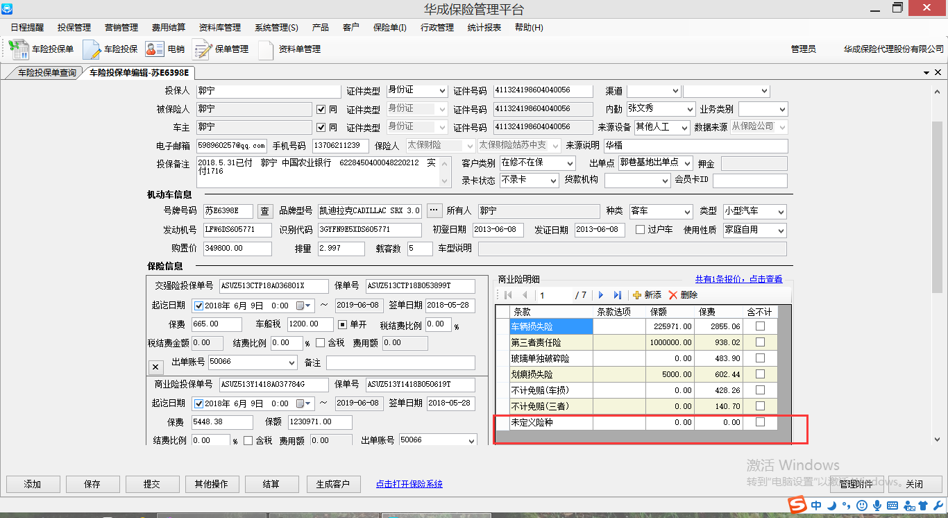 上述车在保险公司系统内查询后并查看详情时,能显示出划痕险不计免赔的保费,使用华成系统下载投保单时系统未能将划痕险的不计免赔下载下来,并且未能将保费下载成功,导致商业险的保费合计有误。
