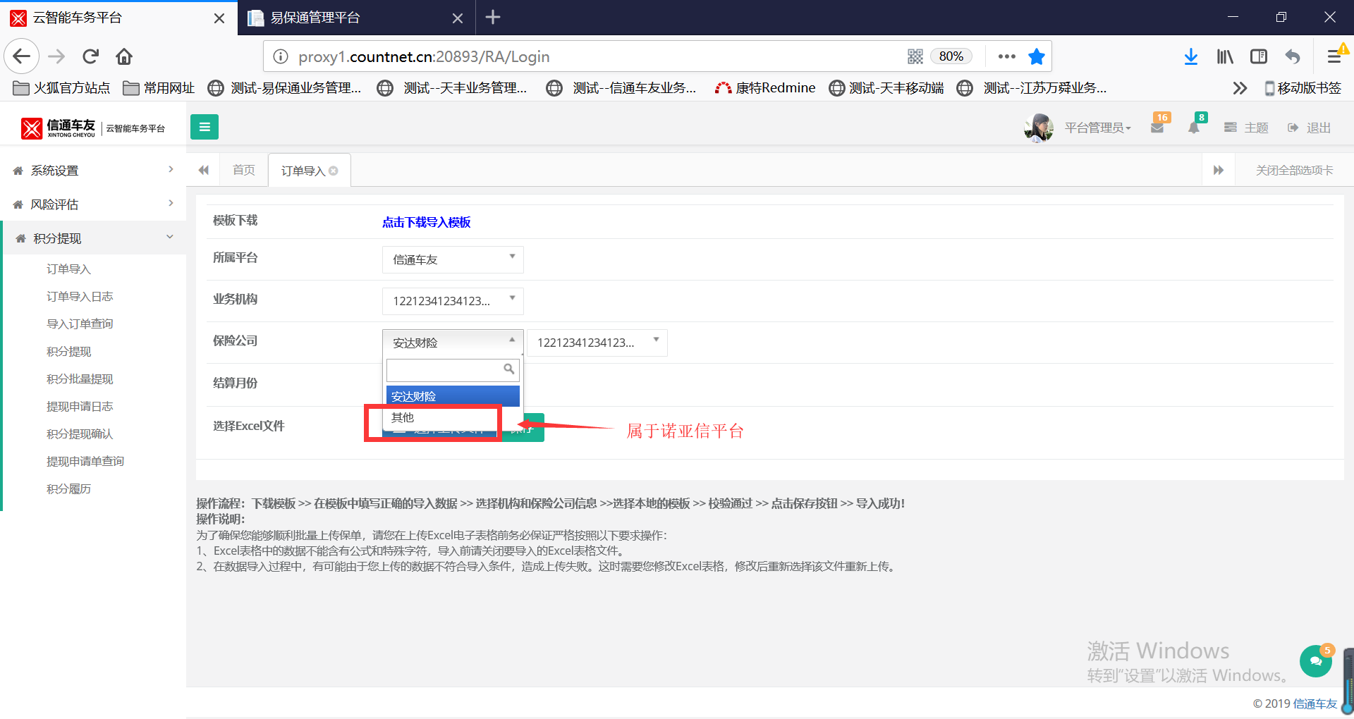 见附图,平台机构选的信通车友,保险公司里不应该显示其他平台的数据