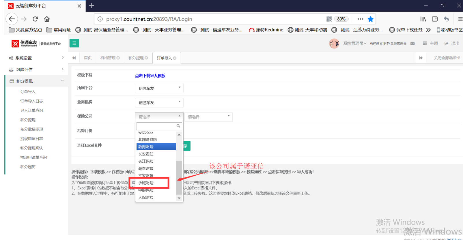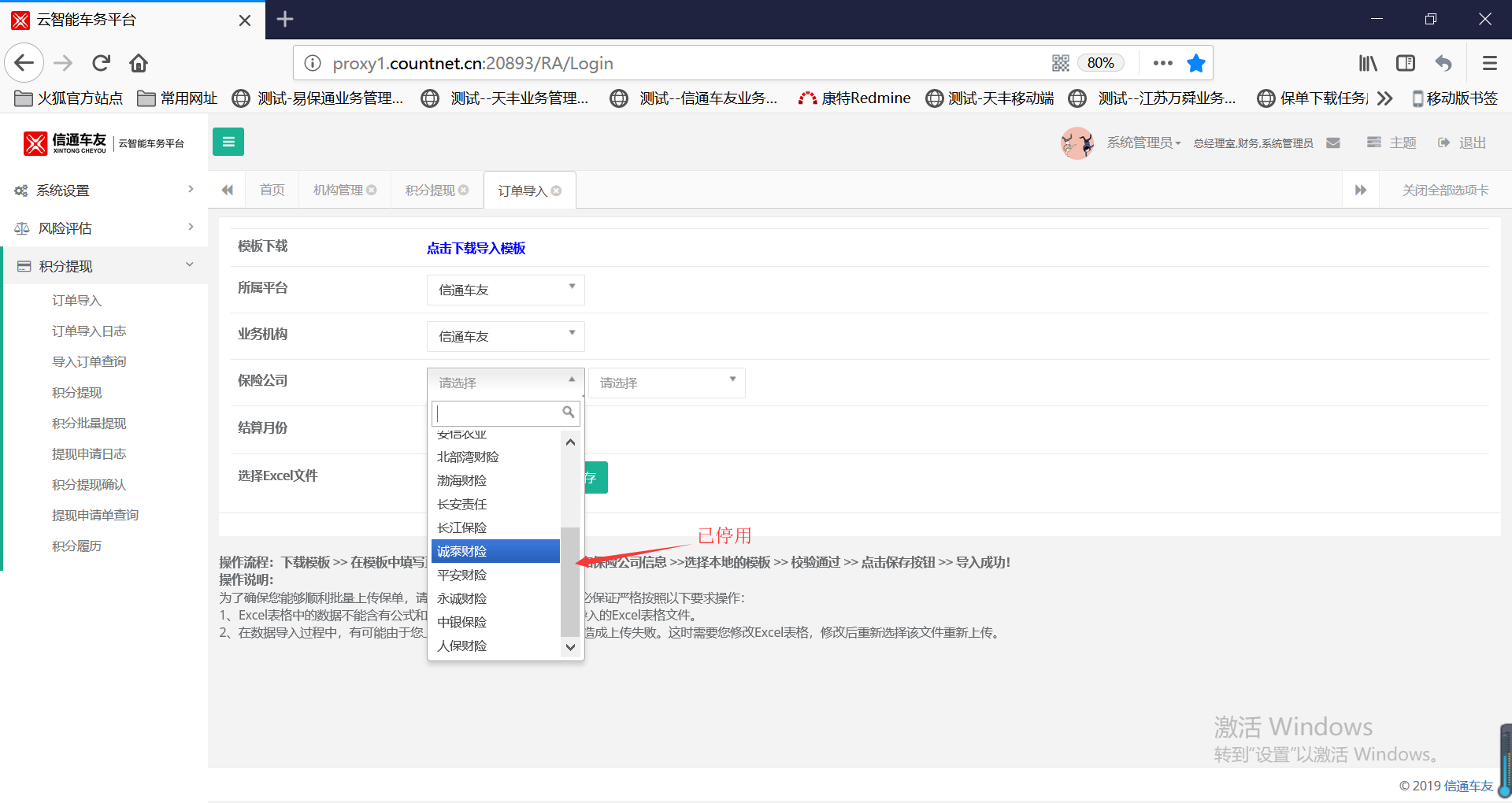 该问题仍存在,信通车友平台下,也显示的诺亚信保险公司。且停用的保险公司也显示,应该不能显示。见附图