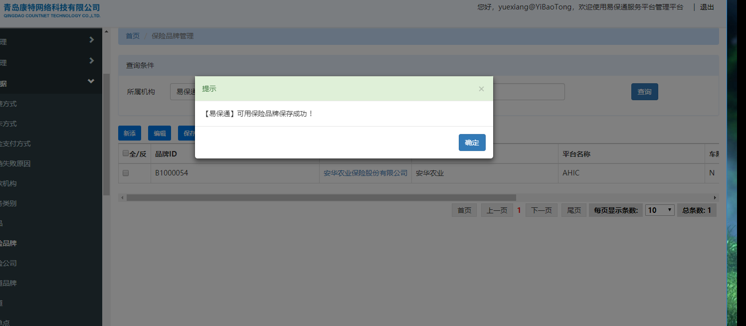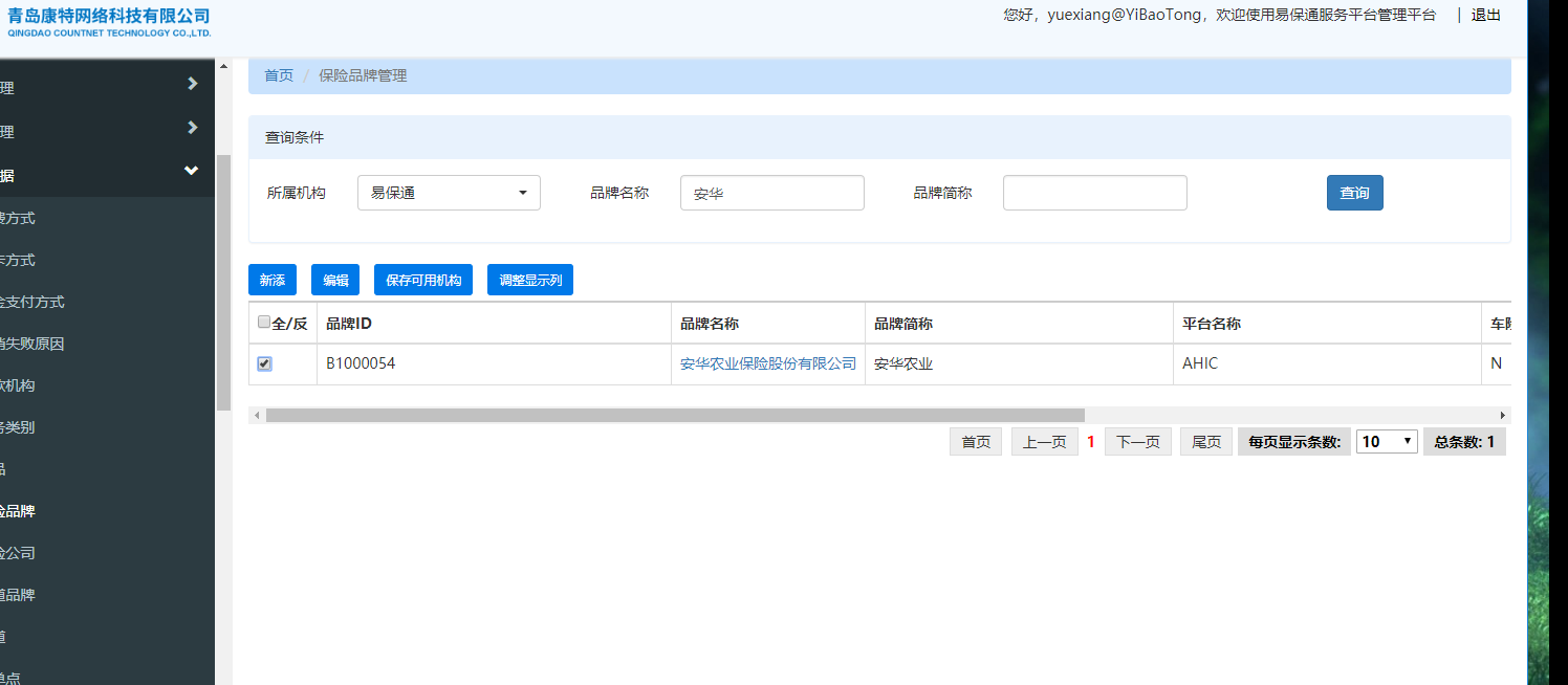 【易保通】基础数据—保险品牌,保存可用机构功能无法保存