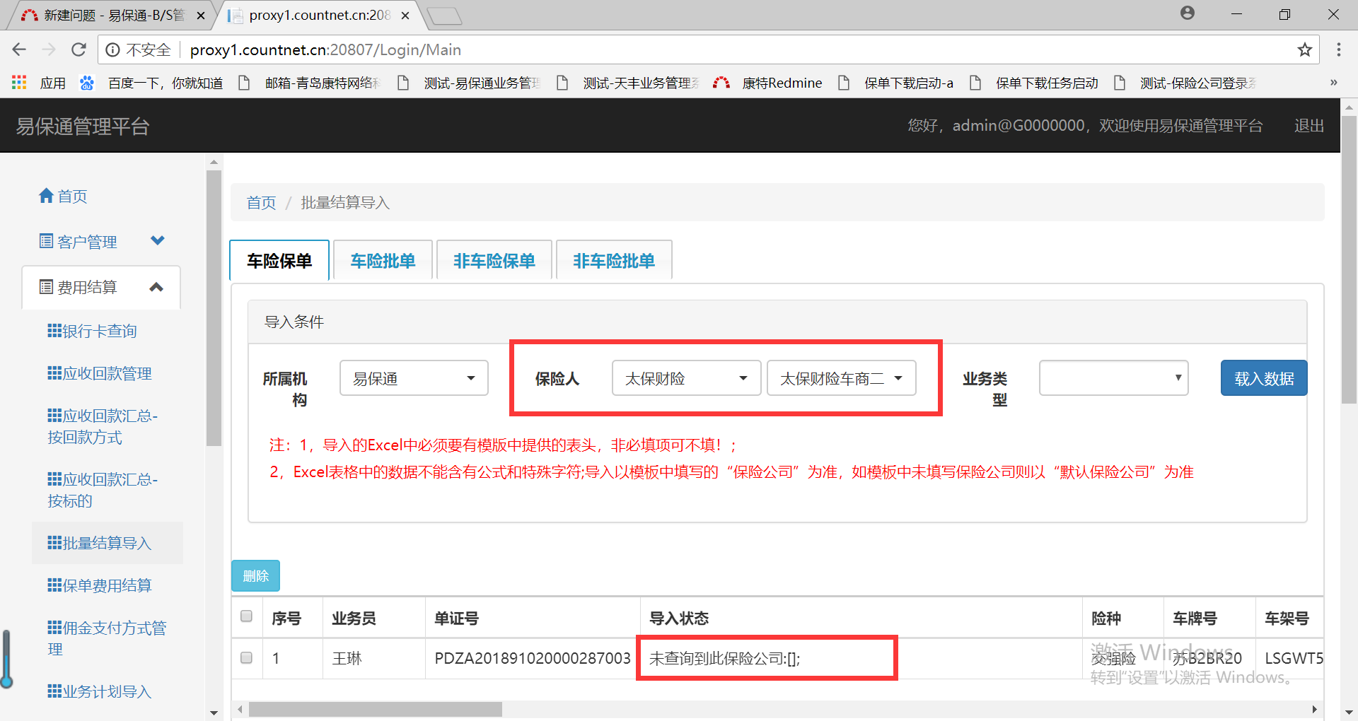 模板不填保险公司时,页面选择了保险公司,导入时提示未查询到此保险公司,见附图