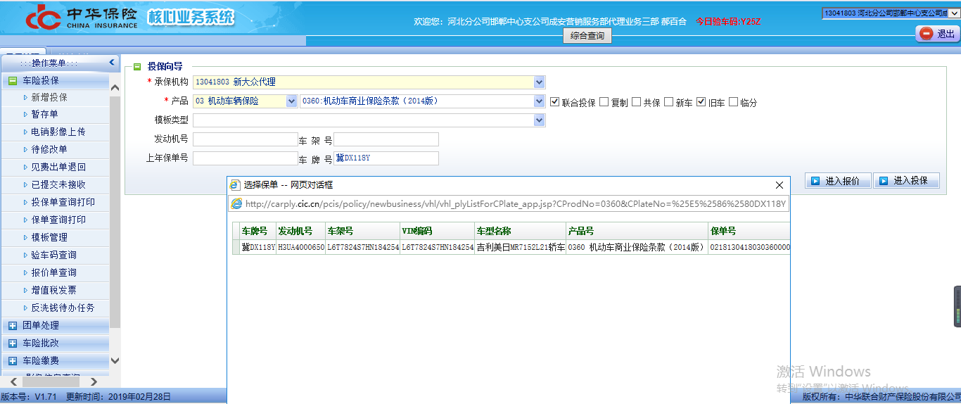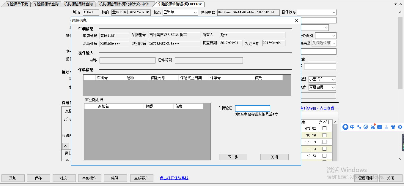内容:保险公司根据车牌号可以查询到上年续保信息,在系统中仅能查询到车辆的基本信息,无上年续保信息。