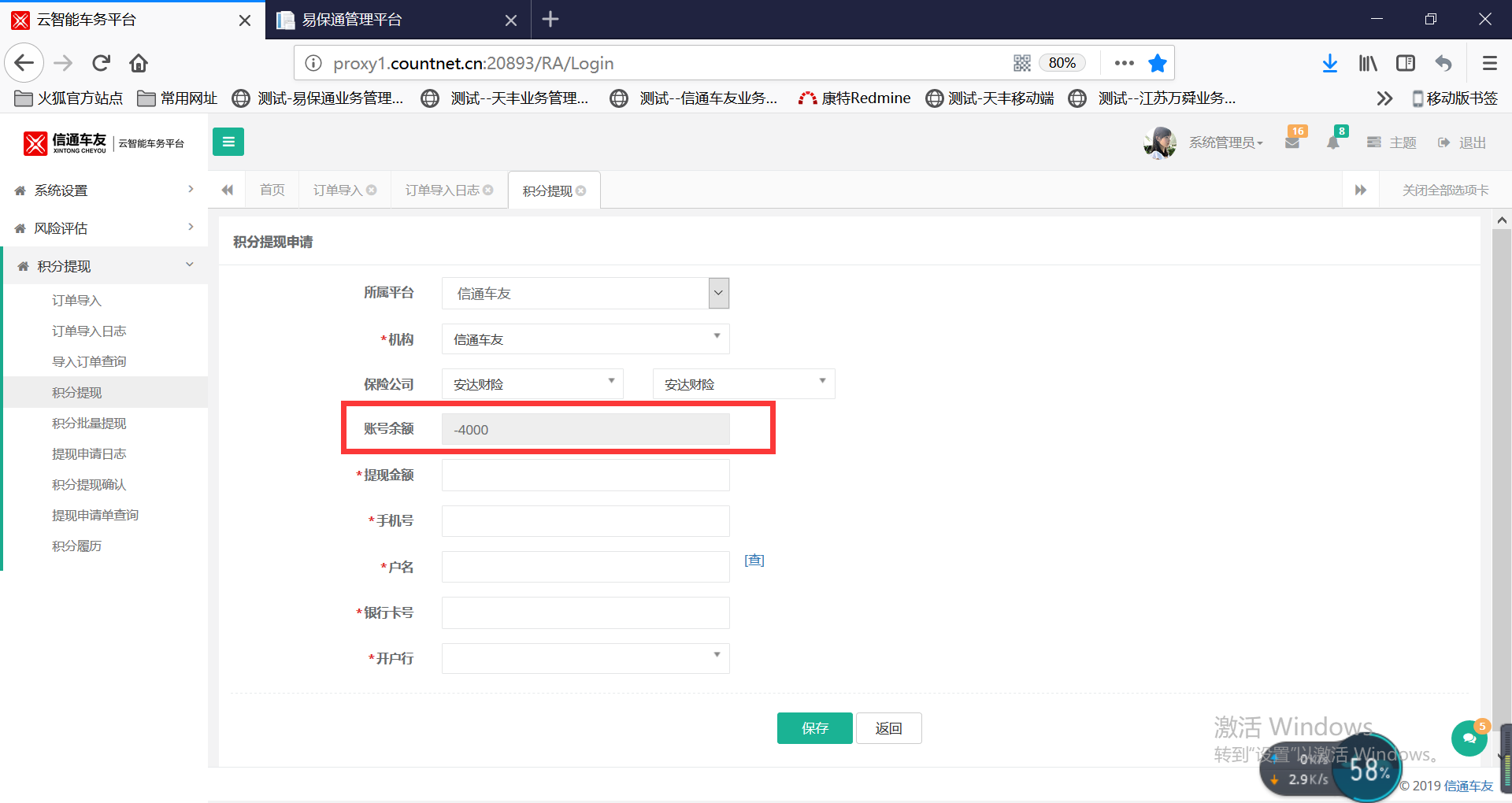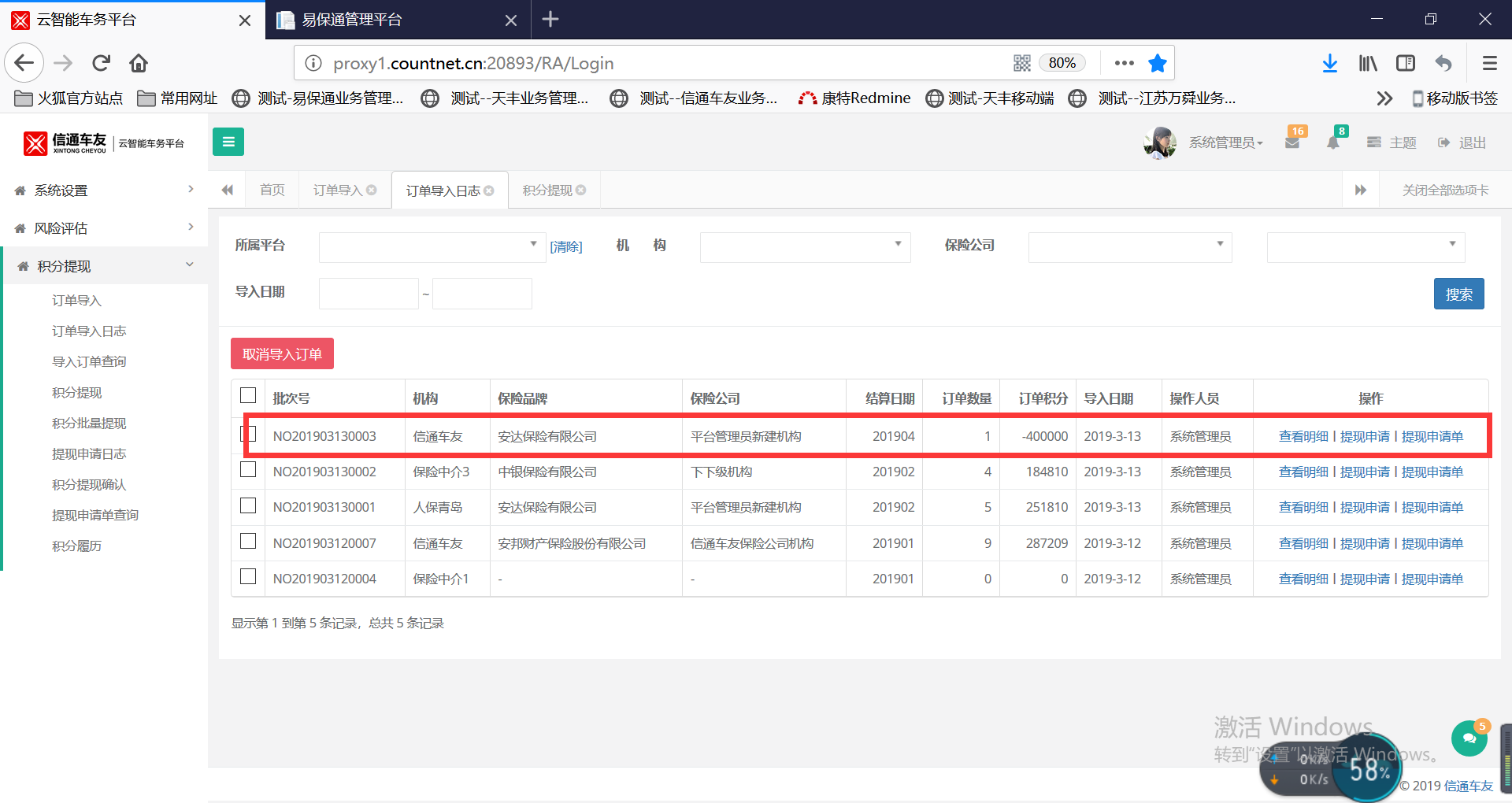 测环境验证通过。此种情况的会提示:当前机构没有剩余积分不允许再导入负积分!