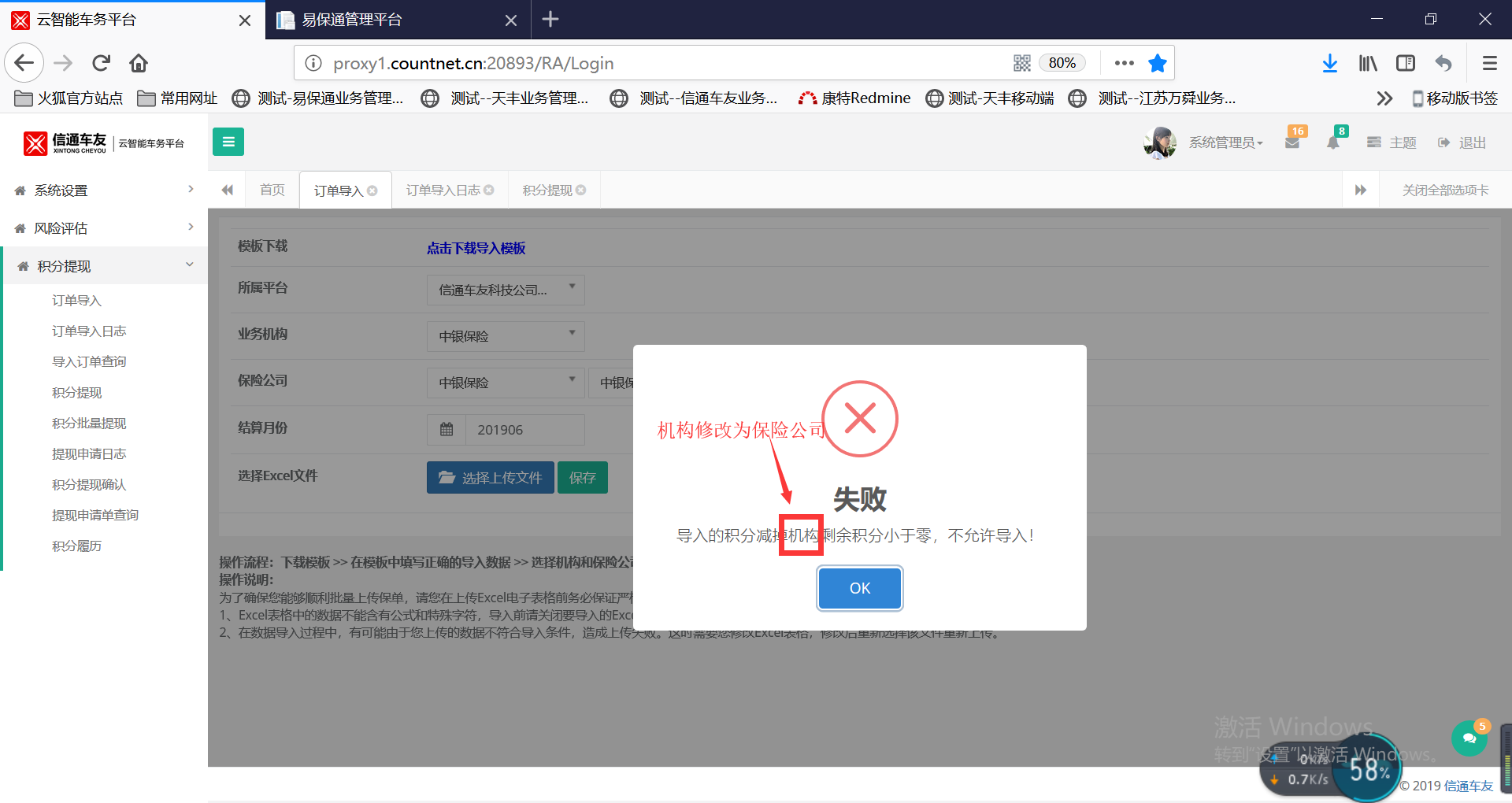 见附图。将机构修改为保险公司,因为提现是精准到保险公司的,导入时判断的也是该机构的该保险公司是否为负数