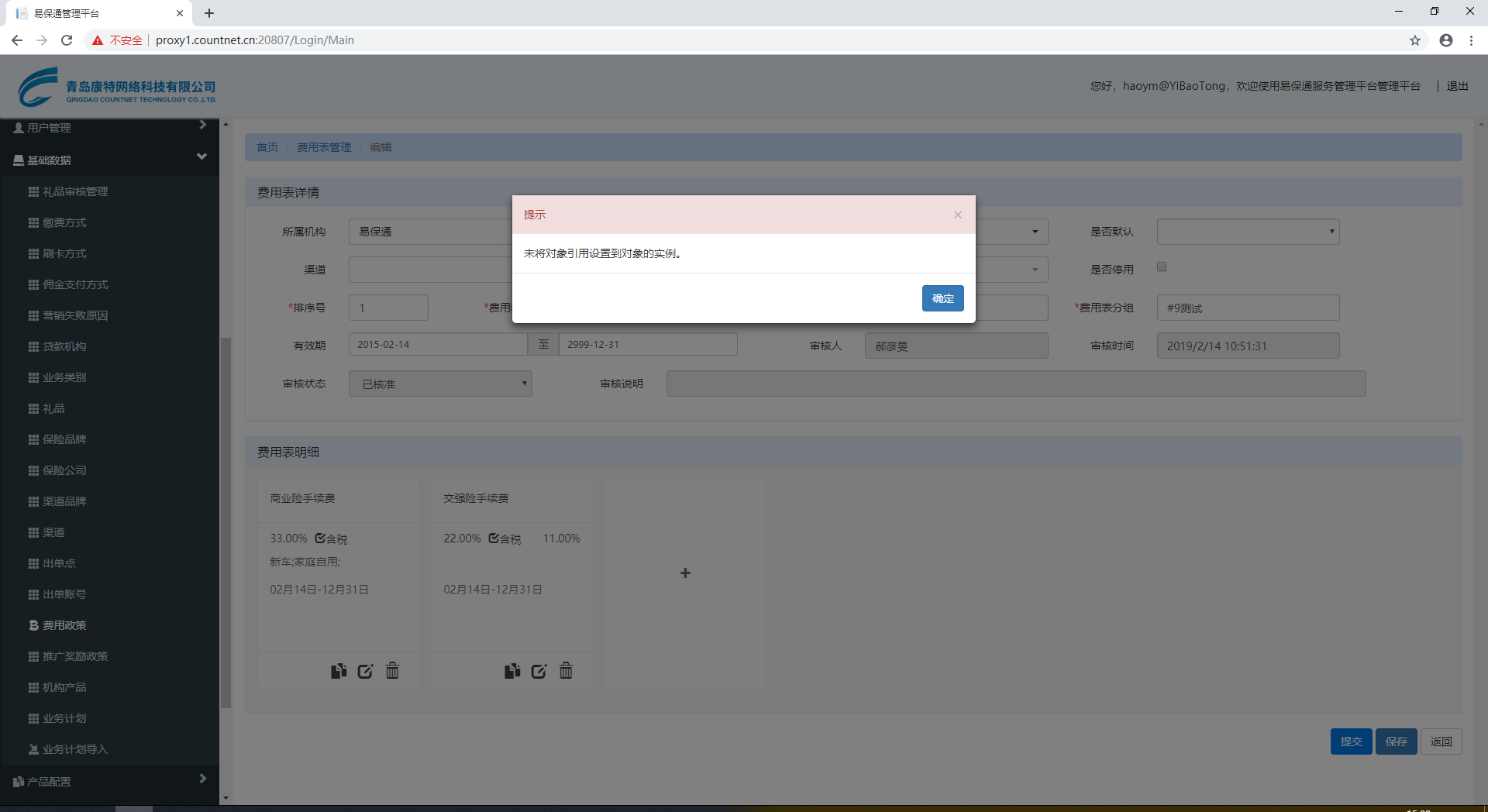【速成高级版】费用政策,修改已存在的费用表,保存报错