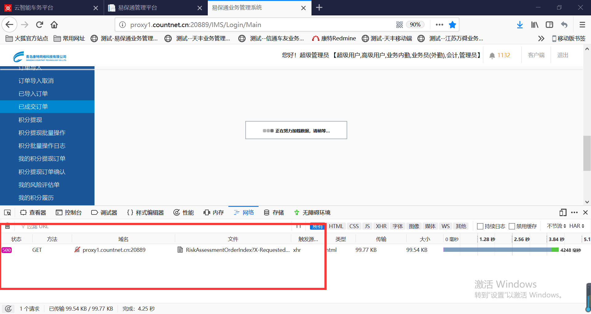 【积分商城-已成交订单】进入菜单报错500,见附图