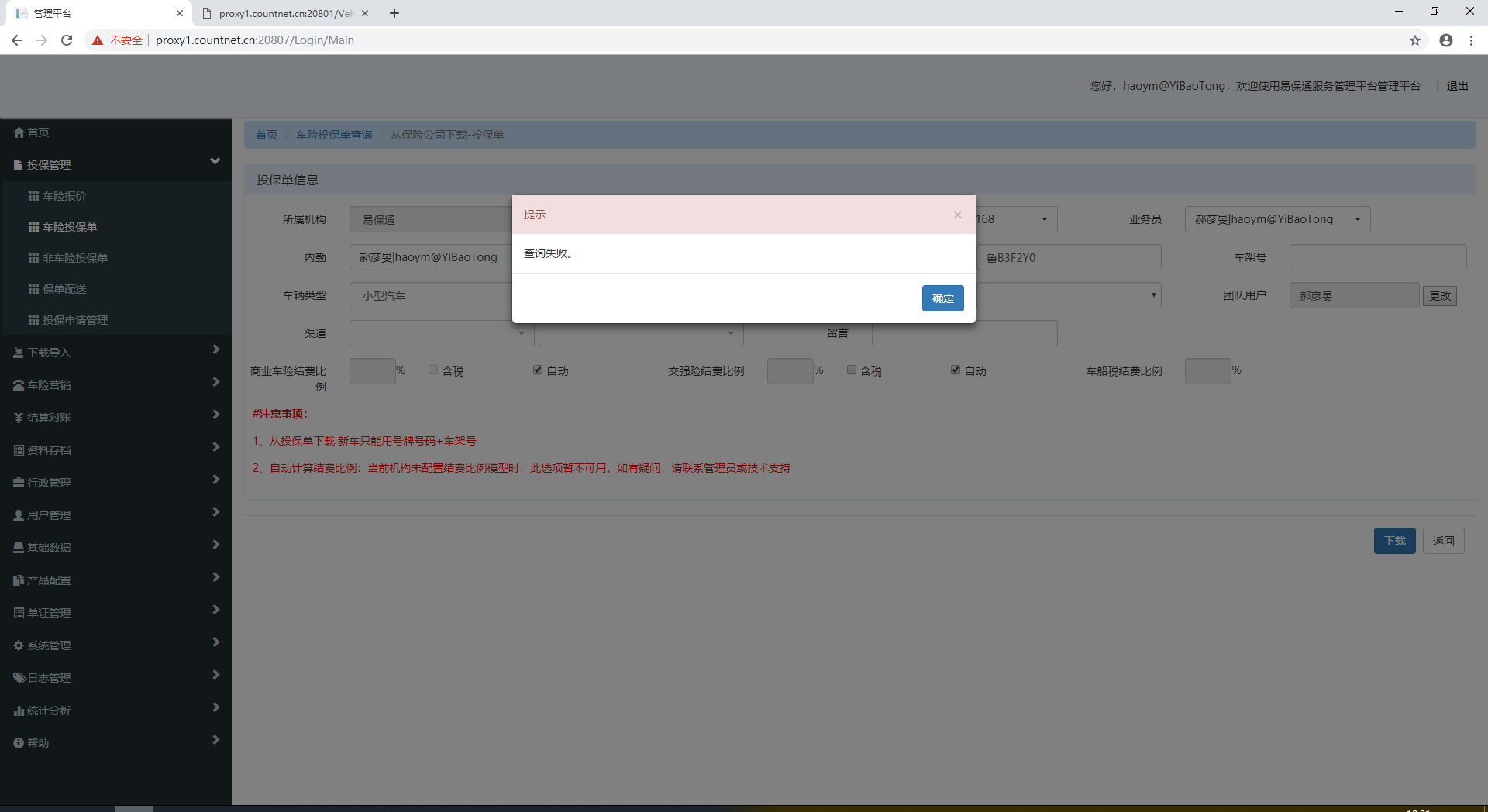 【速成高级版】车险投保单,从保险公司下载投保单下载失败,提示查询失败cs版可以下载车牌号:鲁B3F2Y0