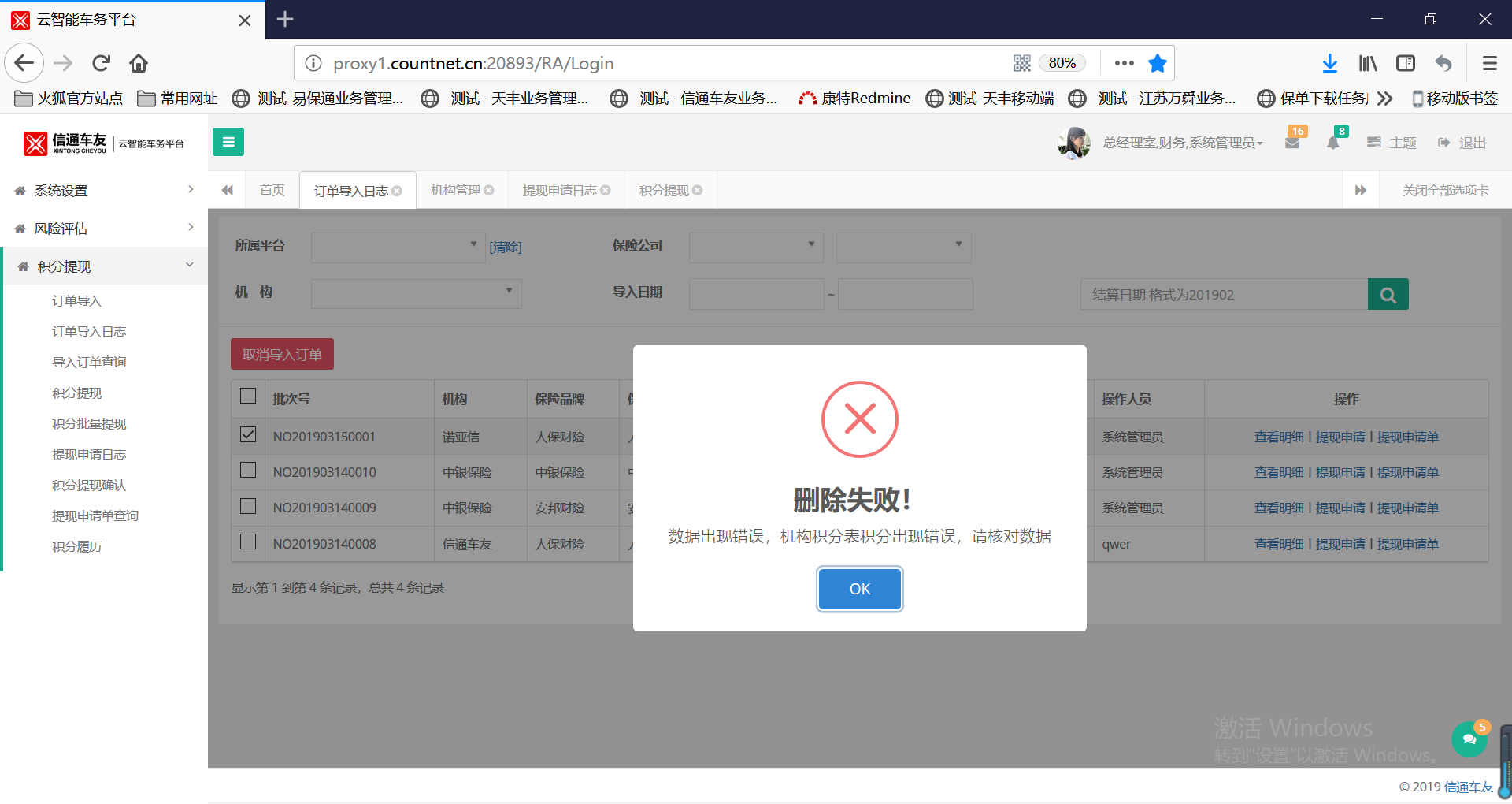 在导入订单查询中,删除全部订单也会提示同样错误,见附图