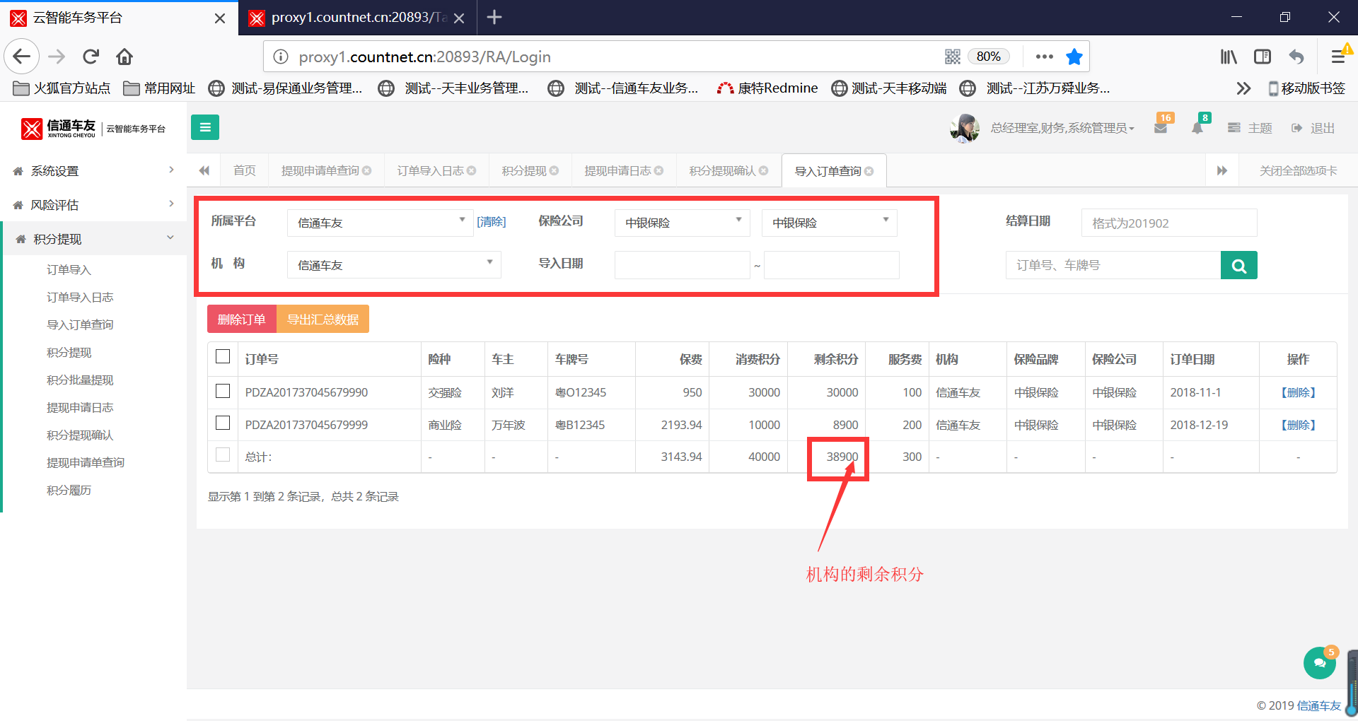 经验证导入订单的查询金额正确,测试机构和数据见附图