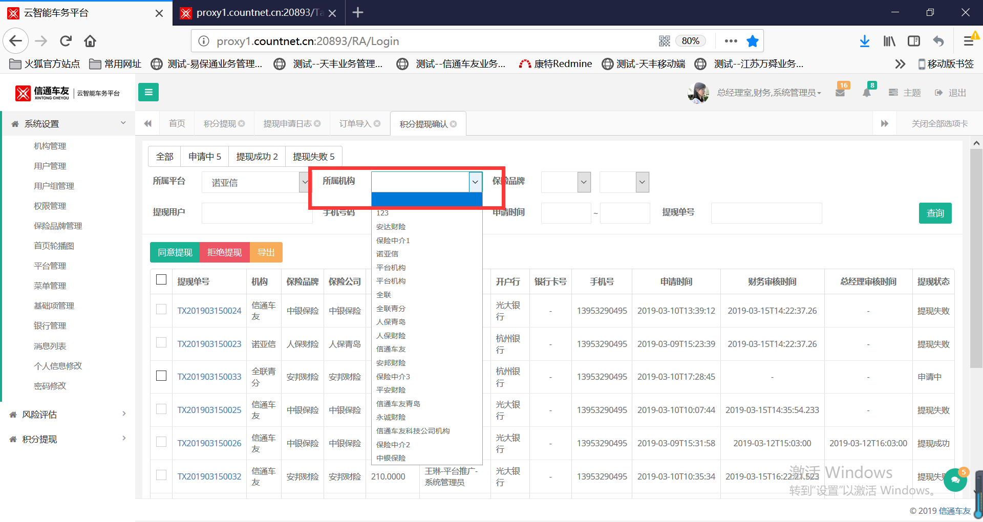 【积分提现确认】机构没有根据平台联动显示,见附图