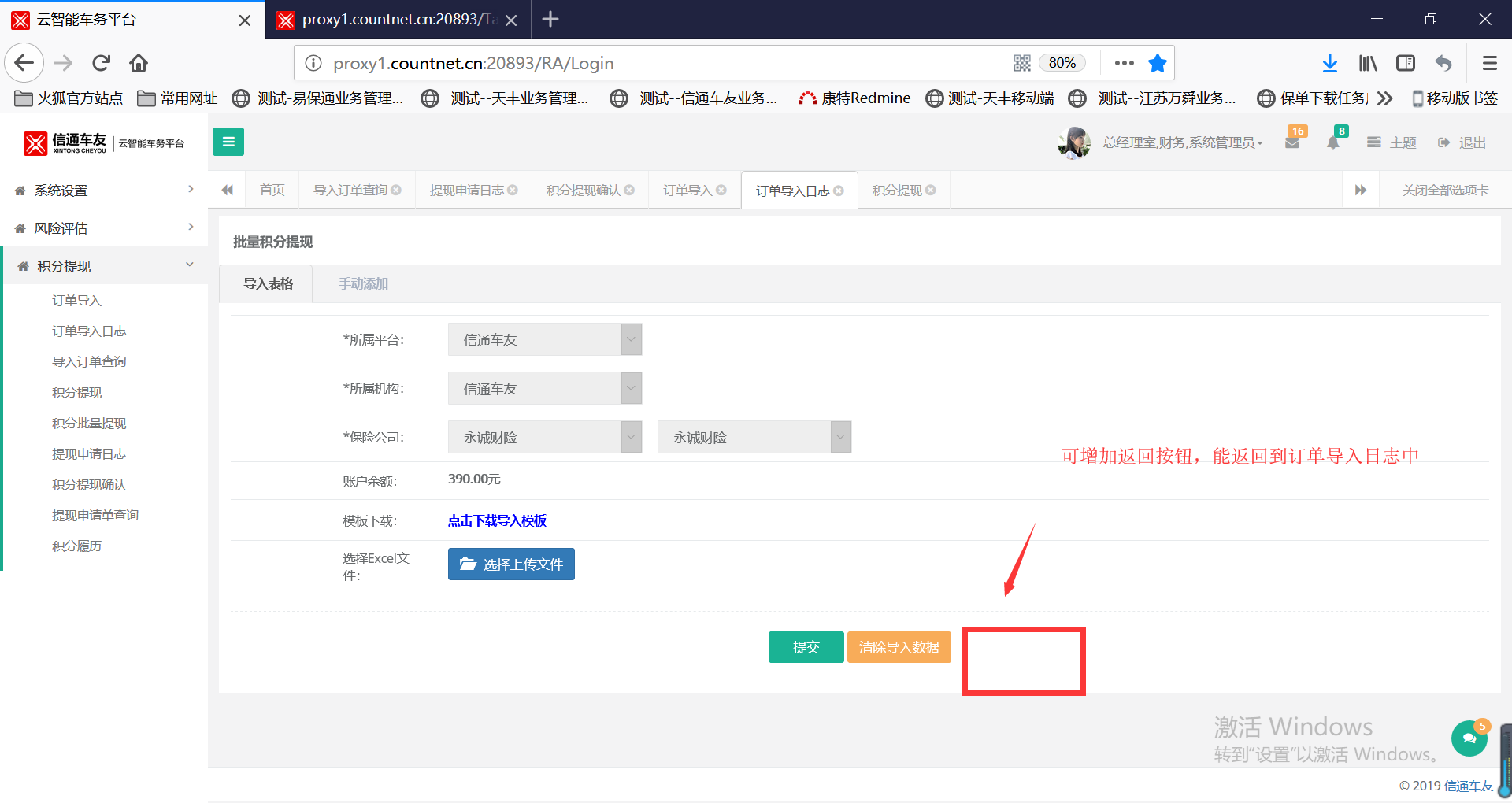 左侧菜单进入批量提现时不显示返回按钮,如果从订单导入日志的提现申请跳转到批量提现页面时,需要显示返回按钮