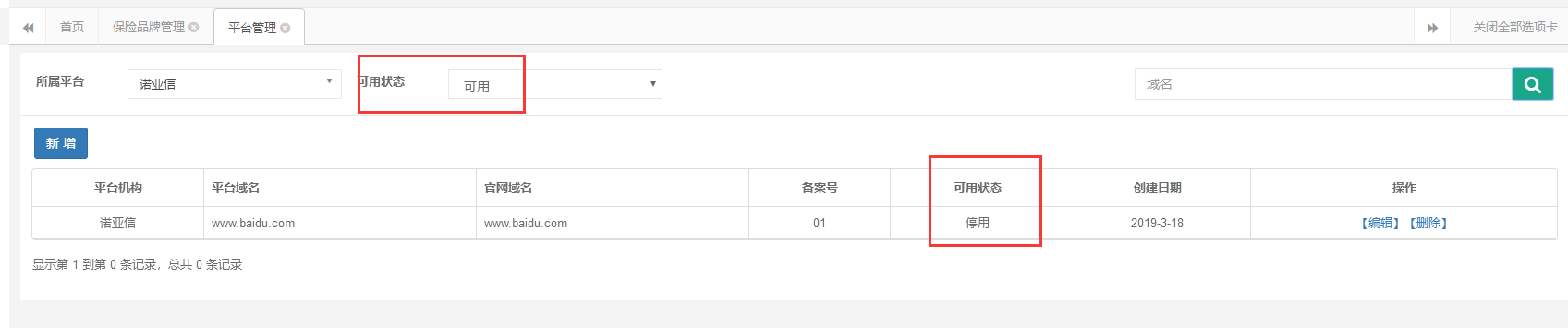 当选择机构后在选择可用或者停用进行搜索,搜索失效