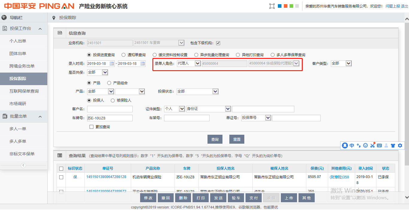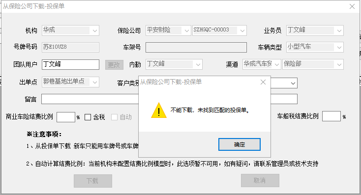 苏E10UZ8 下载投保单失败,提示未查询到此投保单