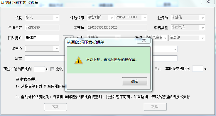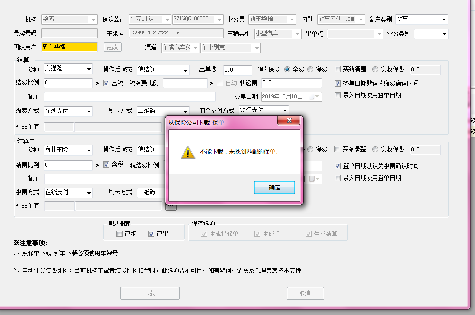 【华成】从保险公司下载保单、投保单时提示未找到此单。
