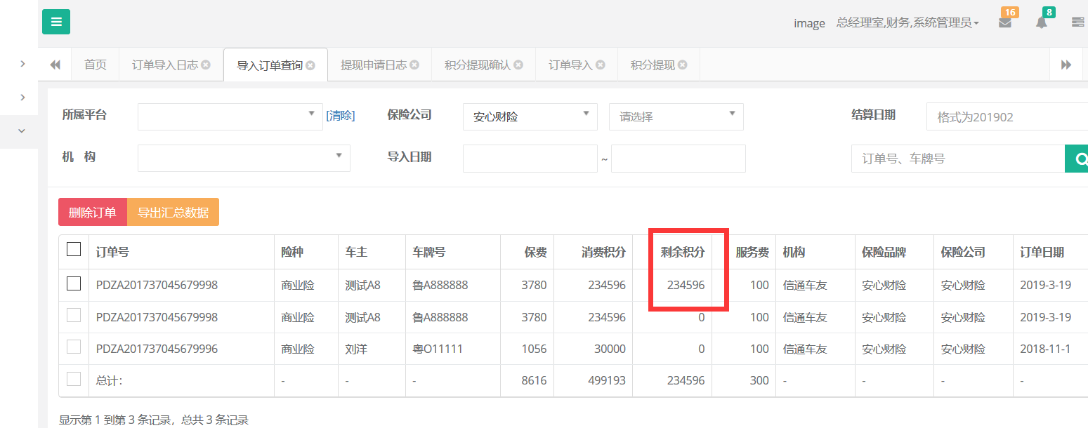 【订单导入日志】导入订单后,日志中的订单积分和提现的账号余额对不上