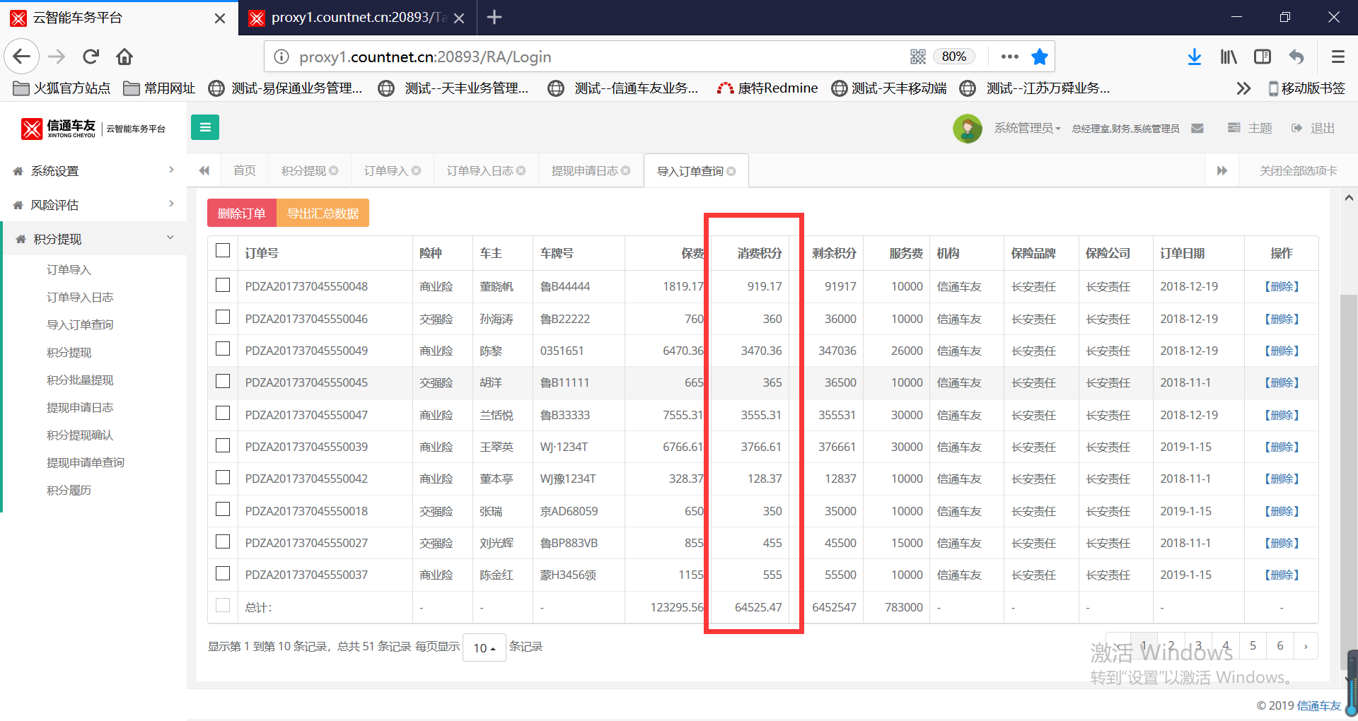 【导入订单查询】消费积分列显示形式应该跟剩余积分相同