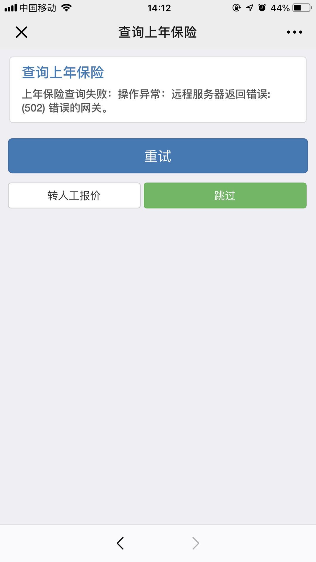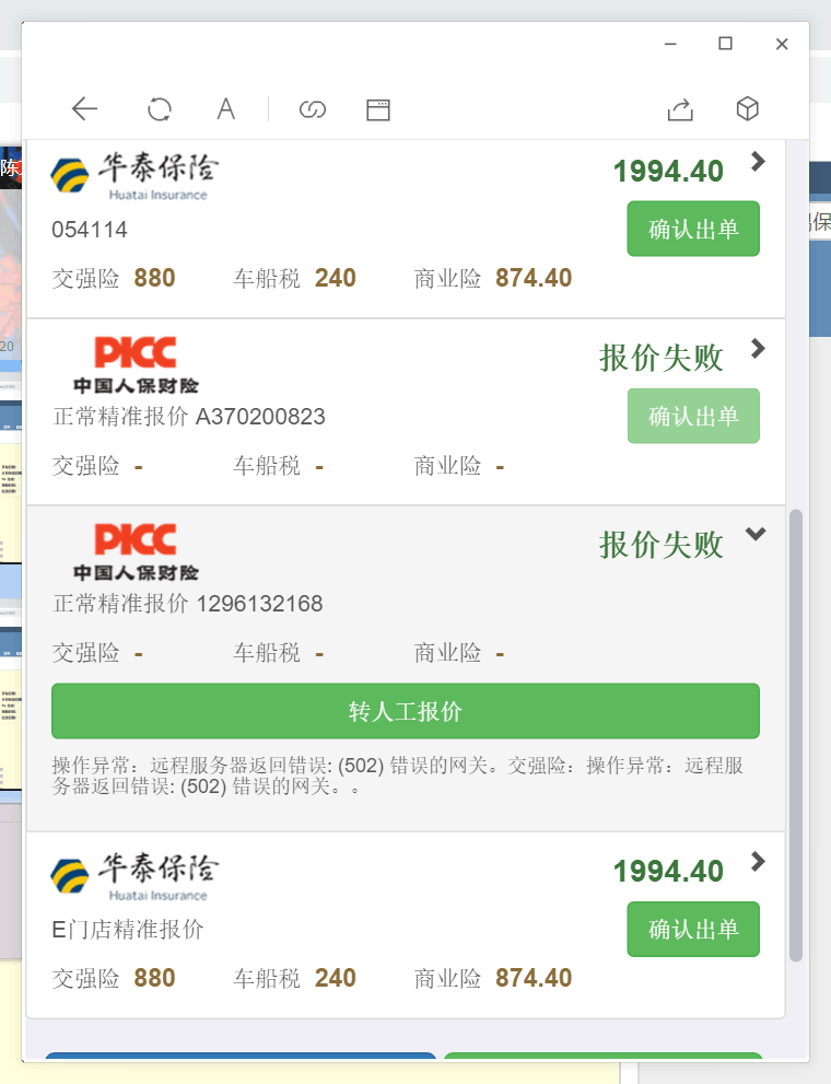 新汇安诚微信端报价查询上年年保是报502错误如图2,