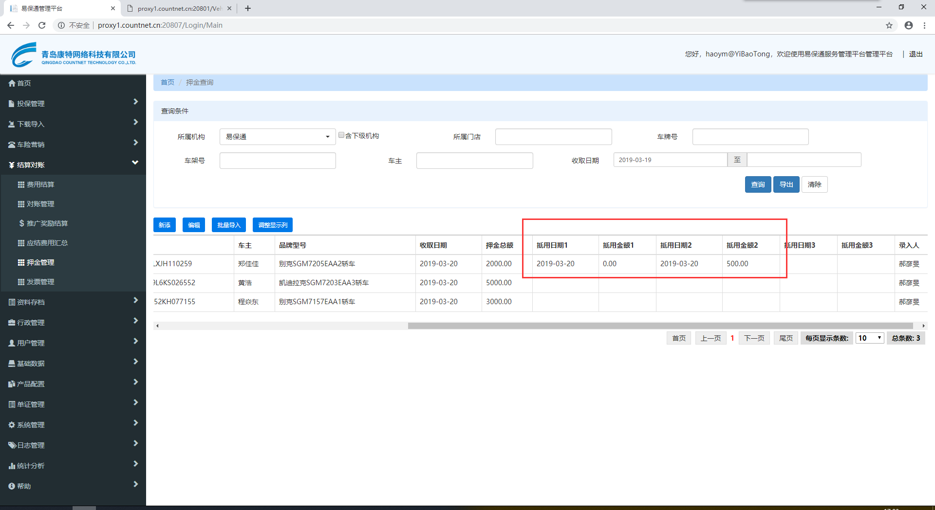 【速成高级版】押金管理,苏EEE590该车存在抵用金额为0.00的记录